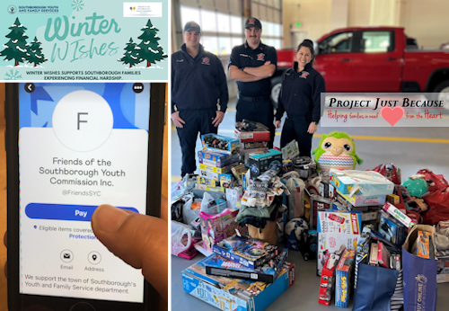 Above: If you’re feeling charitable, you can donate through programs like Friends of SYC’s Winter Wishes campaign or SFA’s annual gift collection drive. (images L-R edited from flyer & photo by Beth Melo and 2022 Facebook post)