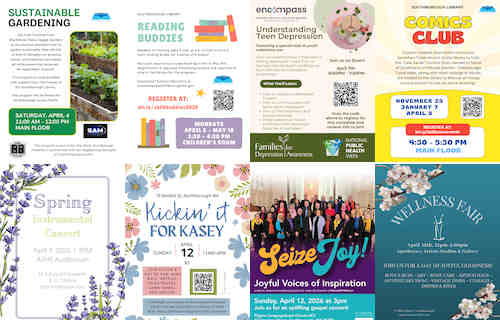 Above: A sample of the many events taking place in our community over the next nine days. (images of flyers)
