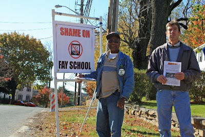 Did you drive by Fay School on Sunday and see a couple of guys with “Shame on Fay” signs? Here’s the scoop.