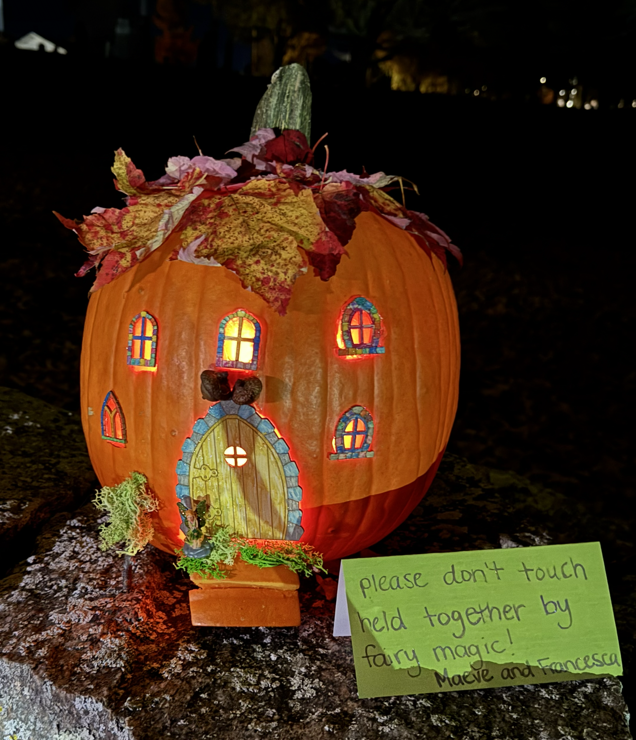 Last night, Southborough Rotary and the Friends of the Southborough Library put on a rescheduled Pumpkin Stroll. The event drew a crop of more than 100 jack o’lanterns and decorated gourds, and a great crowd to admire them.