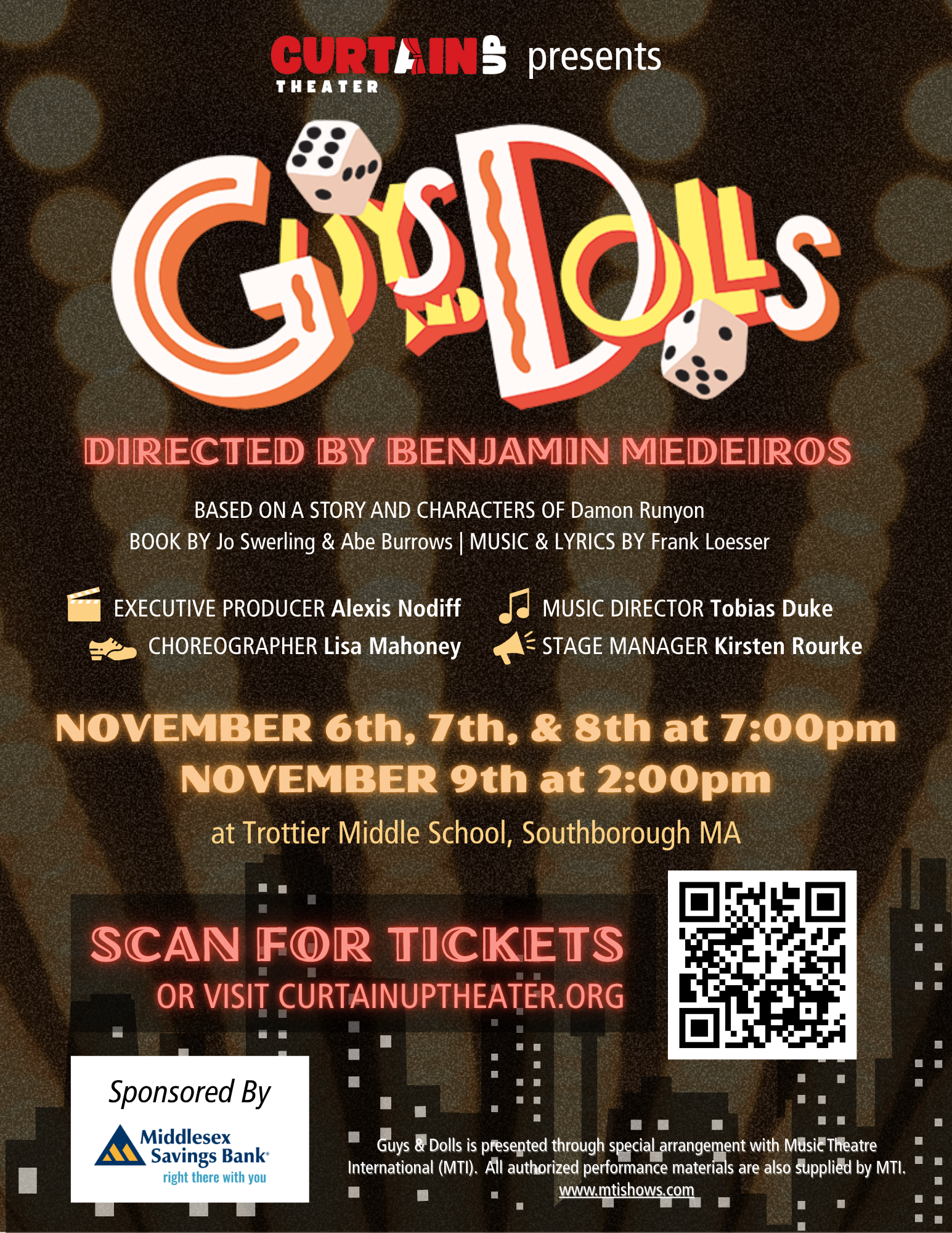 Curtain Up will return to the Trottier stage next week with another musical production. This time, area residents are getting ready to croon and dance as 50s era “Guys & Dolls”.