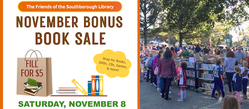 The Friends of the Southborough Library have added a special 50% off discount to the already discount Stuff-a-Bag Sale at this Saturday’s Book Sale.