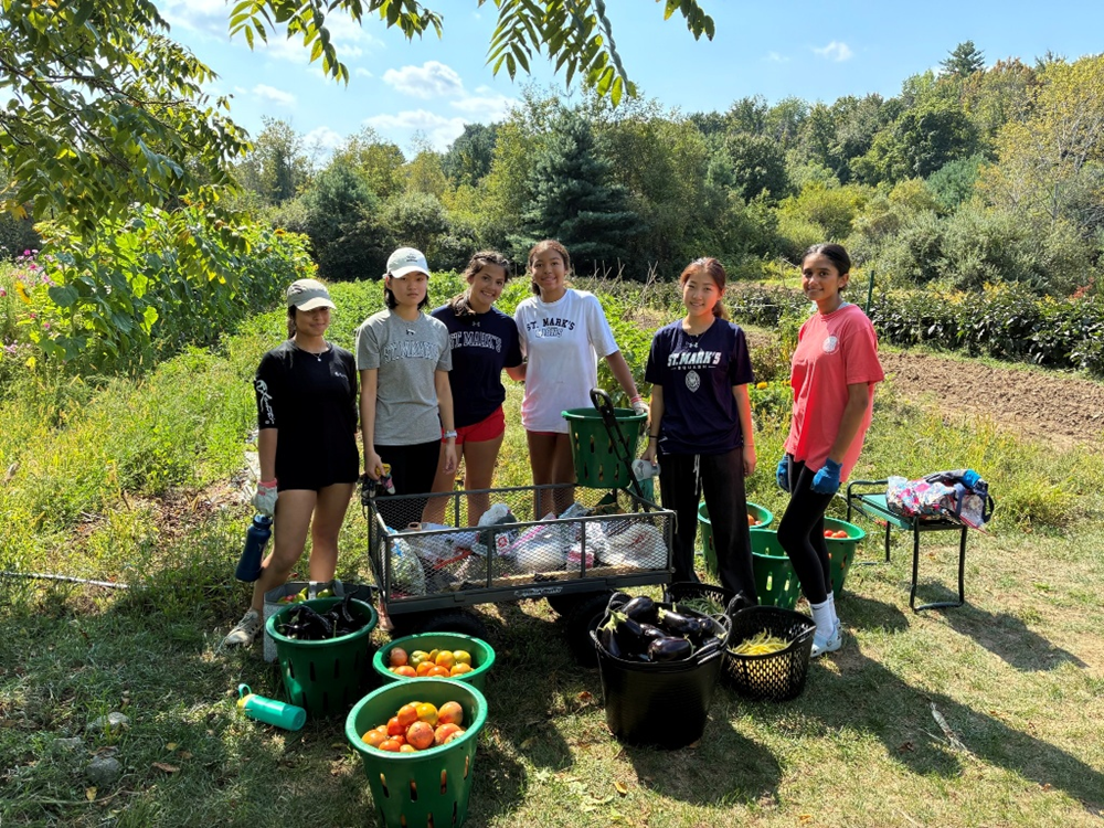 all summer to scout for any evidence of some of the more destructive insects such as the Colorado potato beetle, stem borer, squash bug, cabbage worm and green horned tomato worm. Also, among our Algonquin students who got their hands dirty in the garden with us were two students who started an Instagram page for us and another who has been developing a garden website. We also are very grateful for the generous financial support this year of the Southborough Rotary Club and Main Street Bank, who together donated $2,000 to help defray the costs of our operations. River’s Edge Garden Center and Gulbankian’s Garden Center helped with vegetable plants.