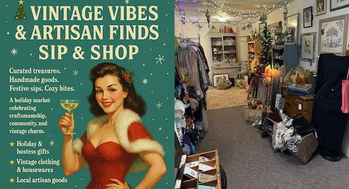 The studio is promoting “A holiday market celebrating craftsmanship, community, and vintage charm.” It will take place on Thursday, December 18th from 6:00 – 8:30 pm at 11 Main Street.