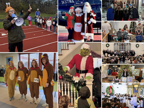 Above: A look at community holiday event highlights over the past month, starting with Thanksgiving fun, through Santa Day and beyond. (images cropped from contributed photos credited below, plus two by Beth Melo)