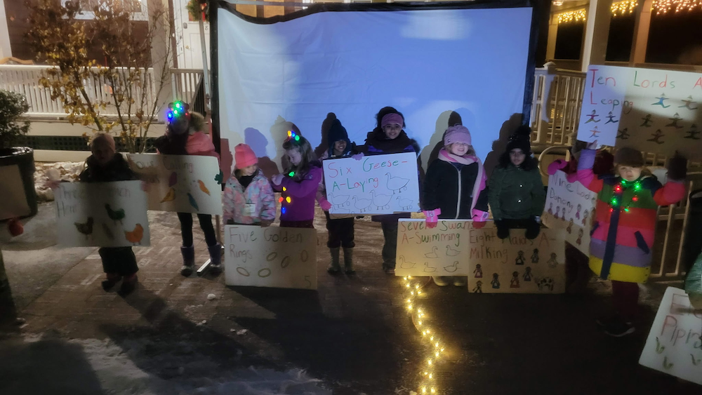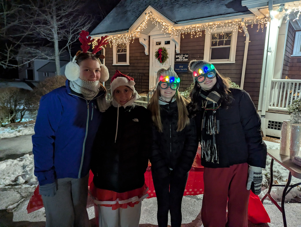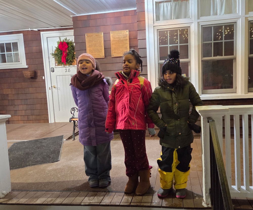 Every year on the Friday of the first weekend of December, the Girl Scouts kick off the community’s winter holiday season. Scouts lead a free Friday night community sing-along on the Community House lawn for families with children. The fun includes Christmas Carols, and other winter and holiday songs, capped off with hot cocoa and treats. (Participants were also encouraged to bring a gift to donate to Project Just Because.) The troop leading the event shared pics: