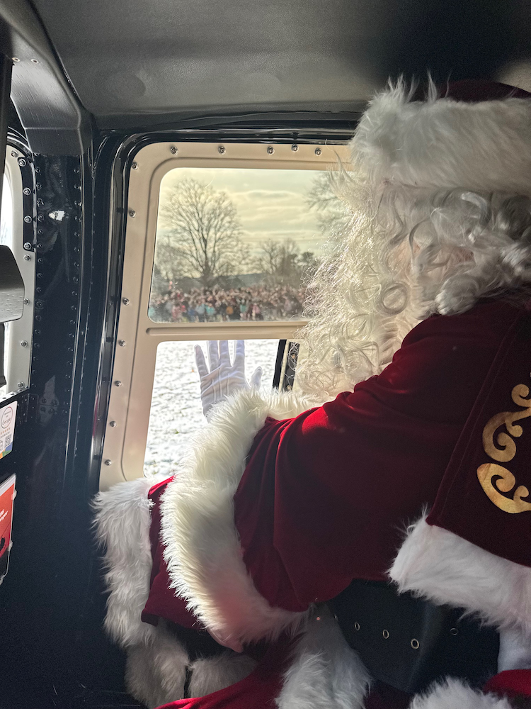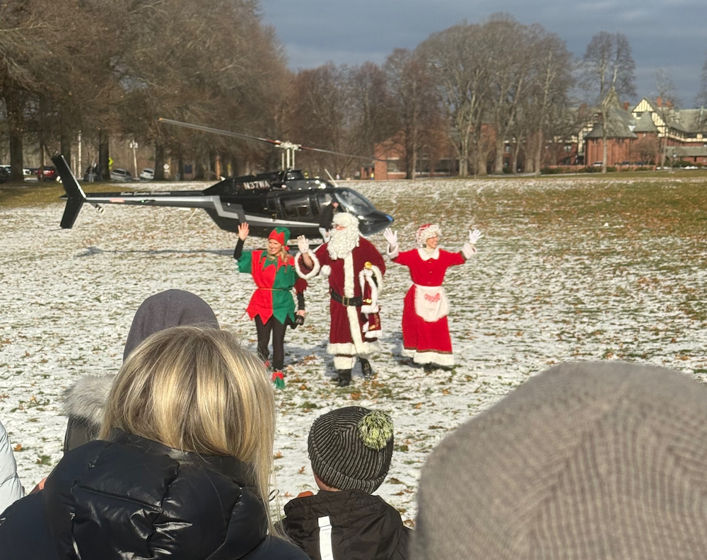 One of the most popular annual events in Southborough is the big visit from Santa Claus, organized by Southborough Kindergroup. With support from the community and sponsors (see flyer right), Santas helpers from Kindergroup host Santa flying in by helicopter (landing on St. Mark’s field). The event features lots of fun for the kids in the Community House, ending with photos with Santa.