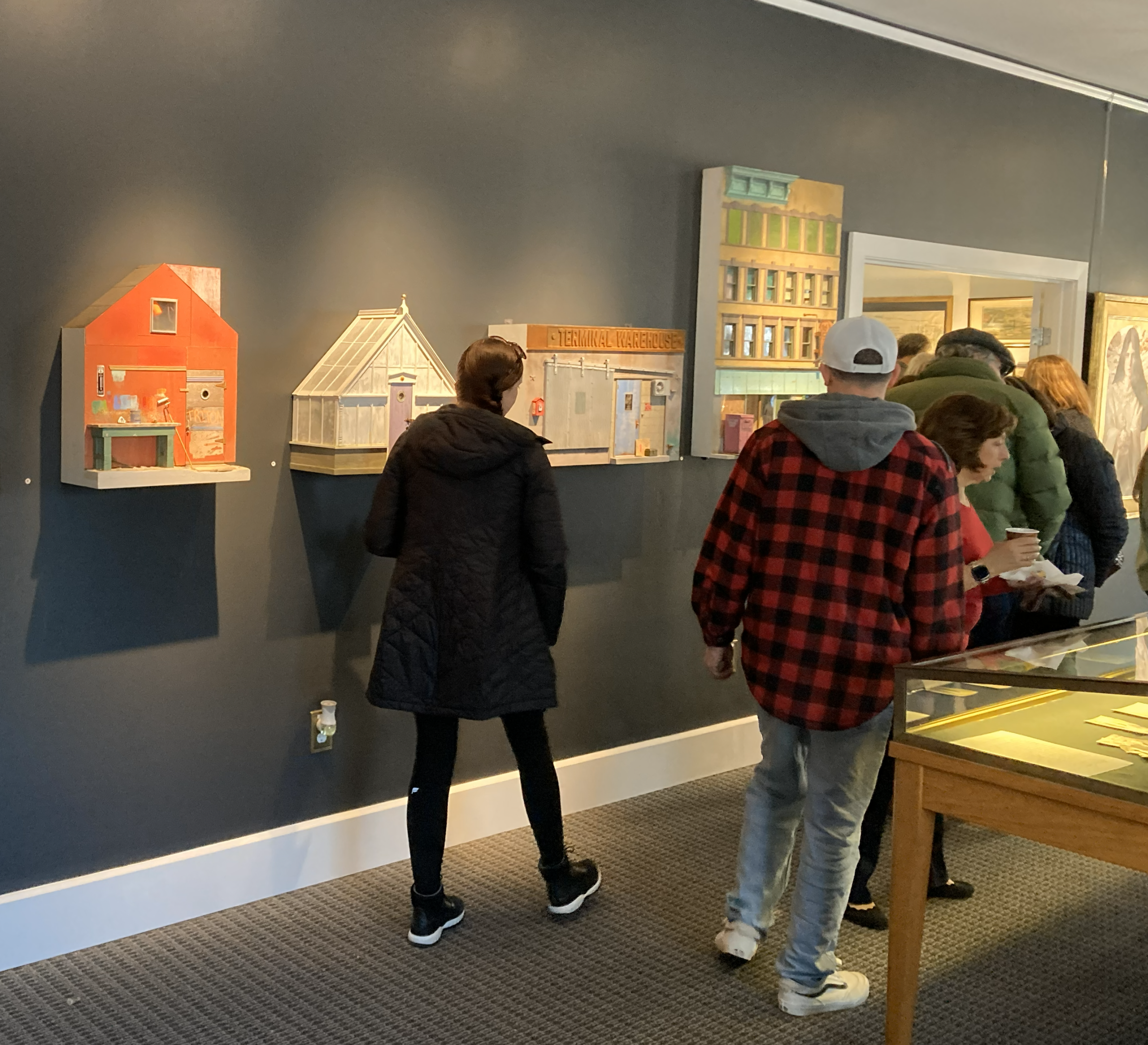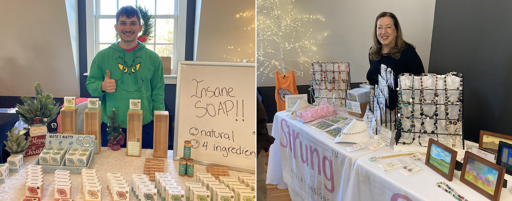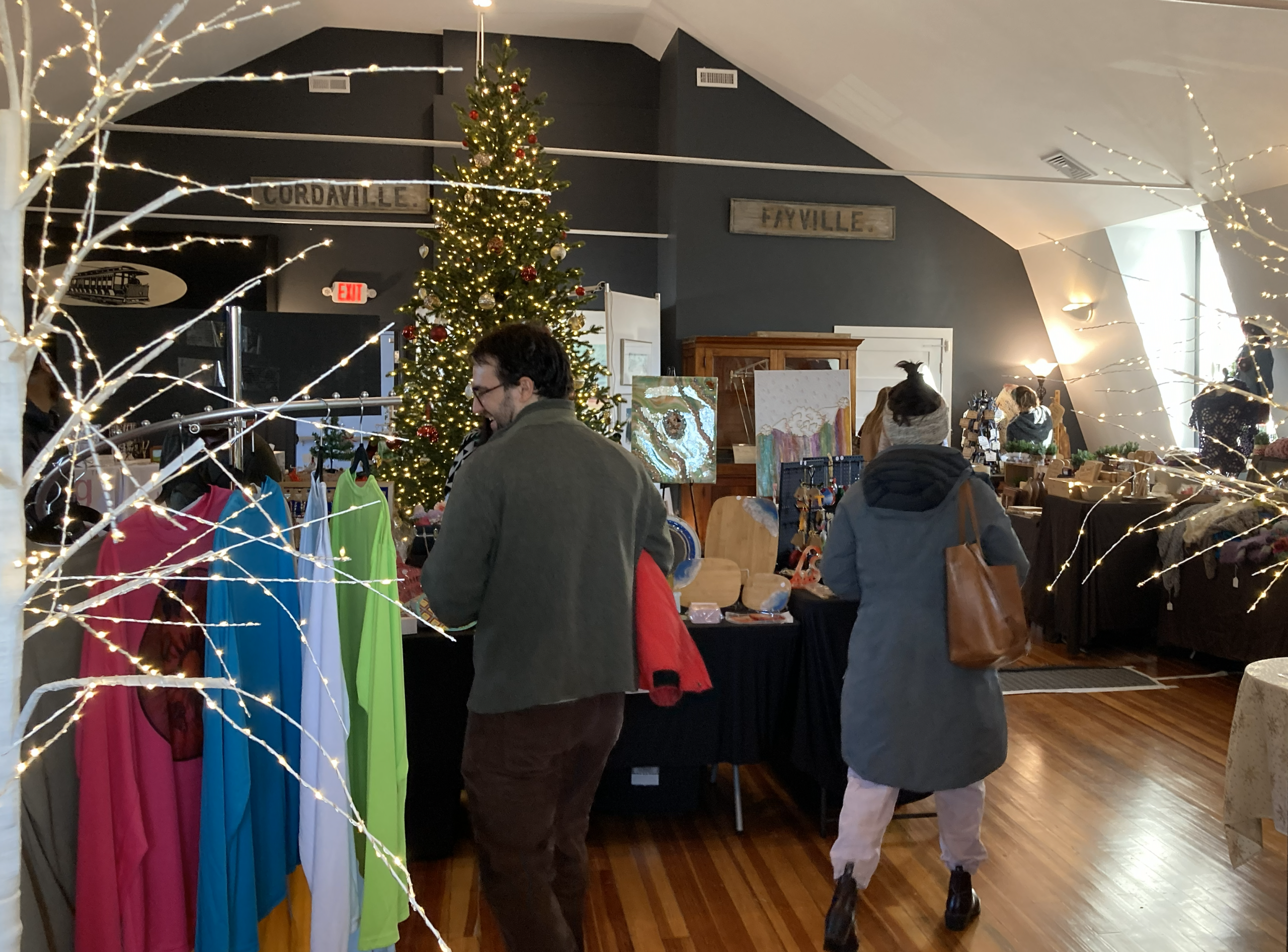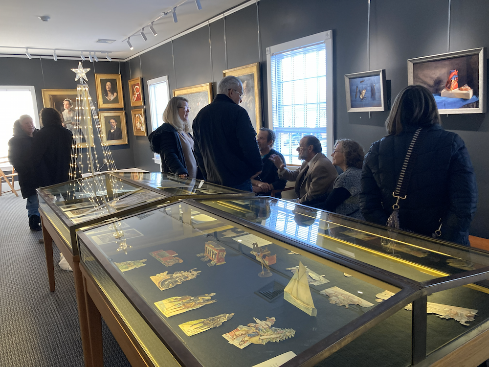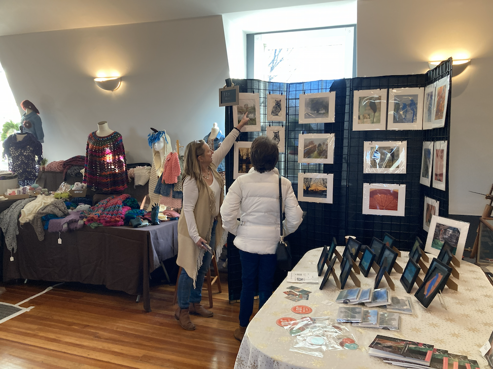 The Southborough Historical Society held an open house with an Arts & Crafts Fair for holiday shopping. The event was part of its celebration of the (temporary) opening of it’s new location in the renovated, historic Fayville Hall. (SHS apparently got approval to hold the one day special event, but still needs to do more work before it is officially open for business.) The celebration also included an art exhibit featuring the works of four Southborough residents. (Click thumbnails of my photos below for more details.)