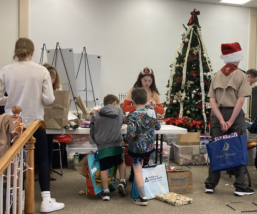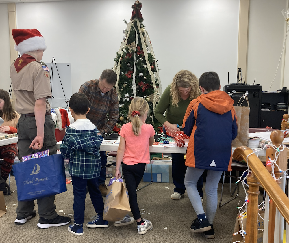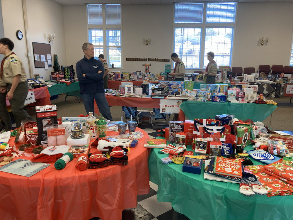One of the many events on the first Saturday in December is this annual shop run as a community service by Boy Scout Troop 92. Scouts provide a safe haven and help for kids doing their own holiday shopping from tables full of discounted items. It includes free gift wrapping (or bags), allowing kids to fully surprise family members when gifts are exchanged. (While waiting, adults can buy food/coffee.) Adults can also shop the event. Proceeds from the sale are donated to charity.