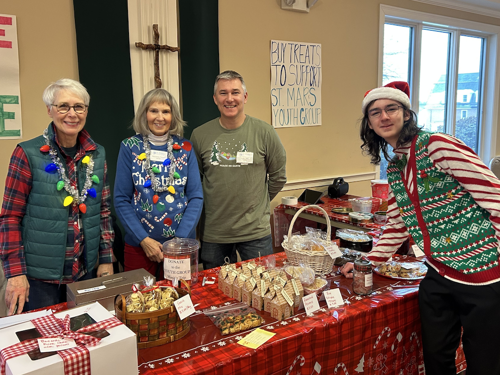 St. Mark’s Episcopal Church volunteers work to put on this big annual event in their parish hall with a White Elephant and craft sales, a silent auction, basket raffle, lunchtime Café, and more. Proceeds support the work of its Youth Mission group. Organizers asked me to share, “Thank you to the community and volunteers for supporting this event, which has been occurring for more than 30 years.” Below are two of my pics (at the tail end) followed by contributions from the church