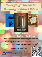 That event will also feature a regional showcase of selected (very) short films produced by high school students. Organizers asked me to help promote the opportunity to students who live in Southborough.