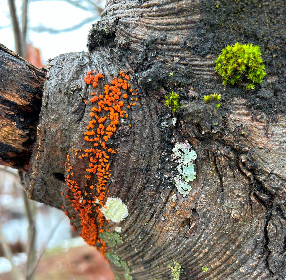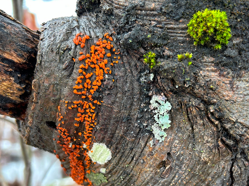 Moss, fungi and lichens are all found on trees and can be beautiful in winter. Keep an eye out!