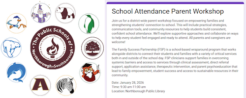 A week from today, parents and caregivers of Northborough-Southborough Public Schools students are invited to participate in a special workshop. The focus appears to be helping to improve students’ school attendance.