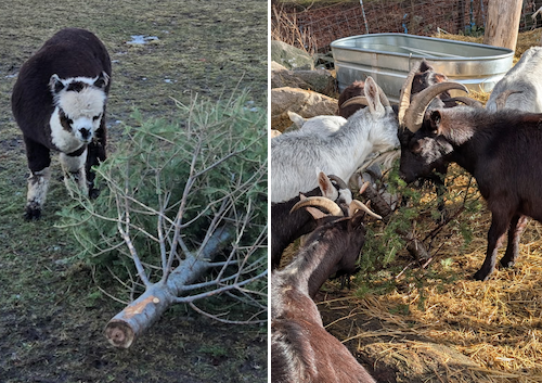 This year, Scouts and volunteers collected over 210 trees — a number impressive enough that several minivans are still recovering. About half of those trees were delivered to local farms, where goats and alpacas enjoyed what can only be described as an all‑you‑can‑eat evergreen buffet. The rest were brought to the transfer station, where the Department of Public Works staff chipped them.