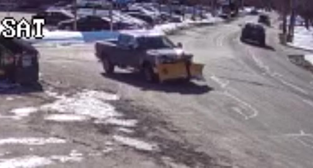 The suspect vehicle was described to be a black pick up truck with a snow plow attached to the front of it and have a blue registration plate.
