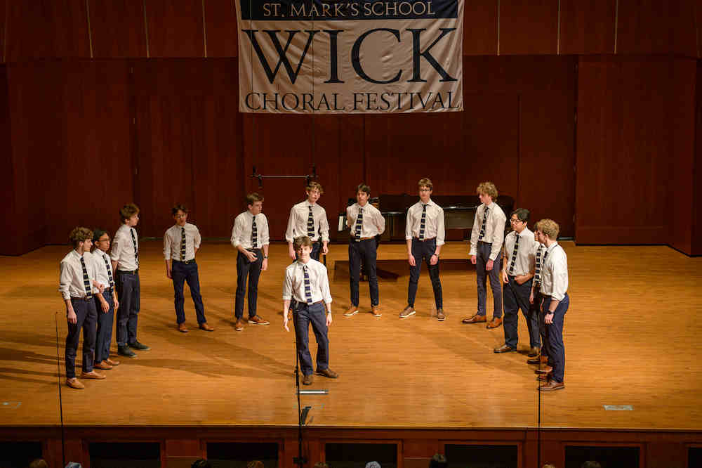 Above: St. Mark’s and guest choral groups exercised their pipes a cappella style at the 2025 Wick Choral Festival (photos cropped from St. Mark’s School’s smugmug site with credit to “Mr. Truman”)