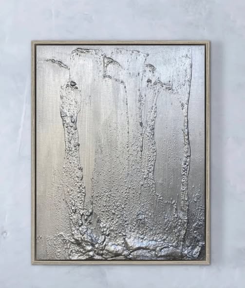 Her artwork leans into the abstract and she seeks to romanticize the essence of life through color and sculpted paint.