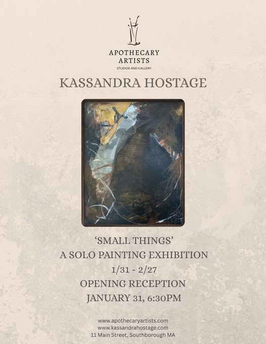 Saturday evening, the downtown art studio will hold another art reception. The event will feature paintings by Southborough native Kassandra Hostage.