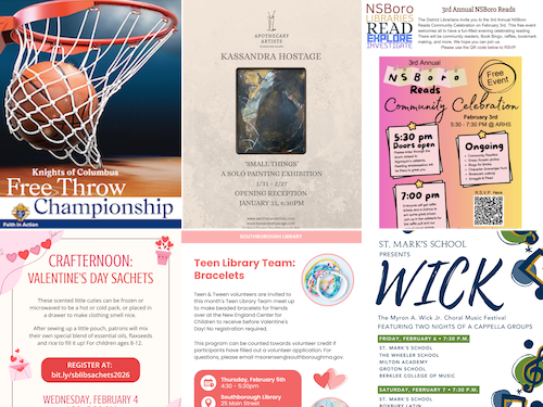 Above: Some of the free events in/connected to Southborough this week. (images from flyers)