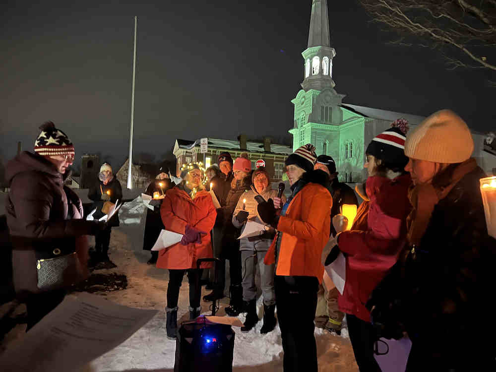 One organizer shared an update about a candlelight vigil the group held last Wednesday evening on Common Street by the Old Burial Ground stone wall.
