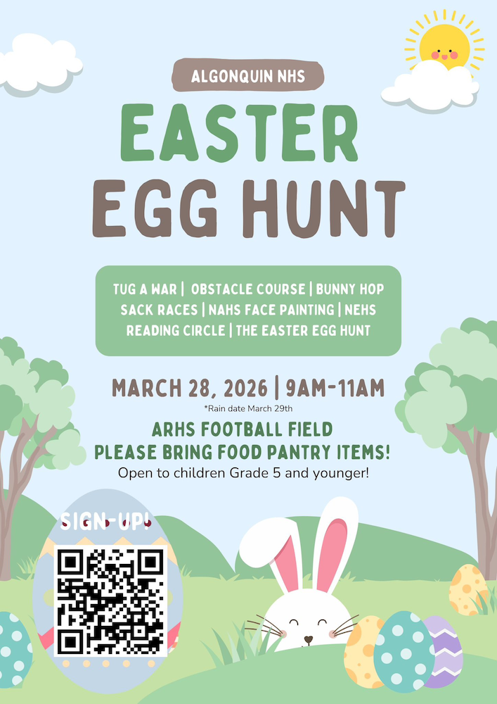 For the fifth year, Algonquin Regional High School’s National Honor Society will also host a free Easter Egg Hunt. Sometimes the events have conflicted or overlapped. This year, ARHS’ date is scheduled for a full week after Kindergroup’s, on Saturday March 28th from 9:00 – 11:00 am.