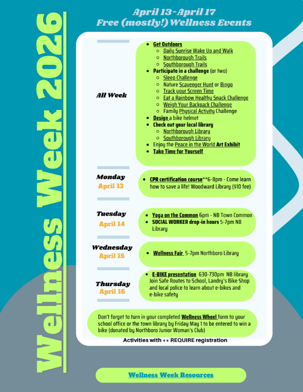 Every year, Northborough-Southborough Public Schools celebrate Wellness Week, encouraging students to improve their health/wellness. This year, they’re making a bigger public push to engage the entire community.
