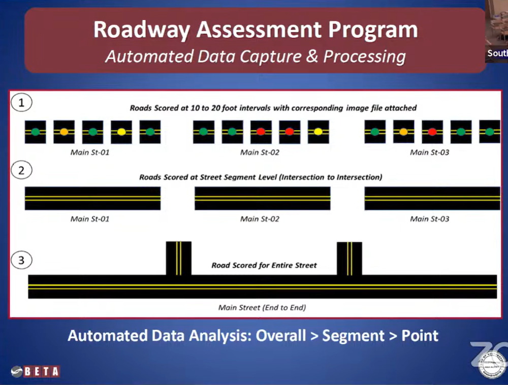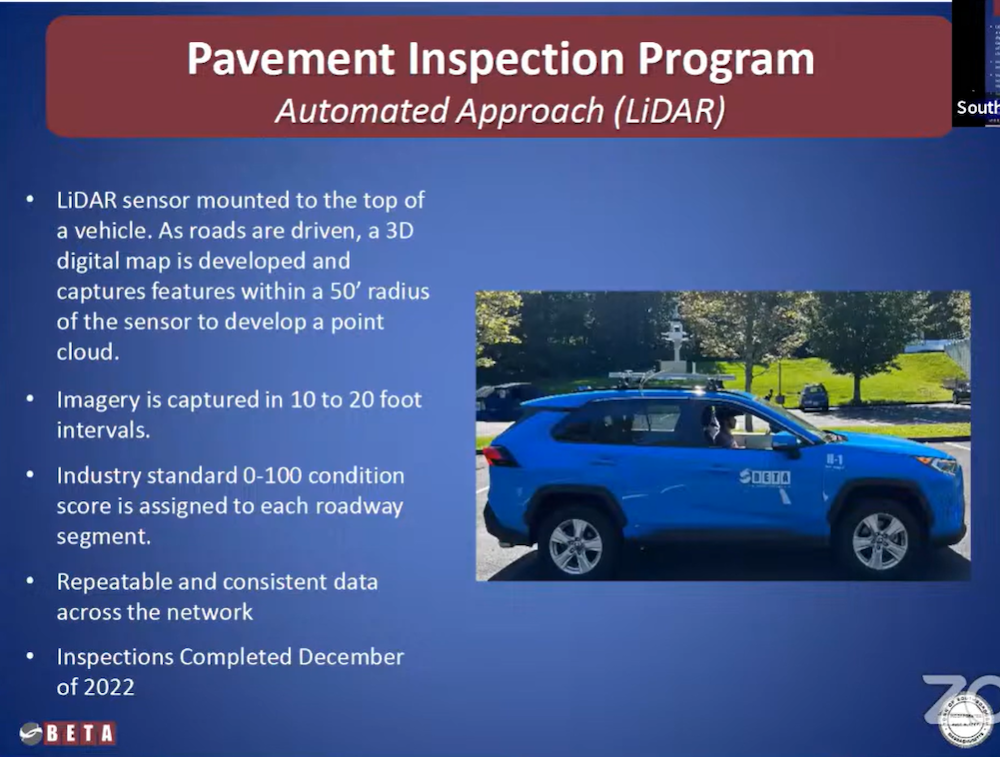 In his presentation, Cundiff described work done by the Town’s contractor Beta, to score the road conditions. (For readers who want more details on how that was done, I’m including two slides below from the consultant’s presentation to the Select Board in 2024. You can read their full presentation and report here.)