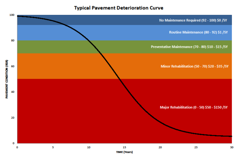 Historically, the town has taken the approach of worst first. We would basically focus on the failing portions of roads which is a large capital investment. So they would draw that capital improvement out of the operating budget and that would not allow us to put any kind of protection mechanisms into the other roads that aren’t in that bad condition.