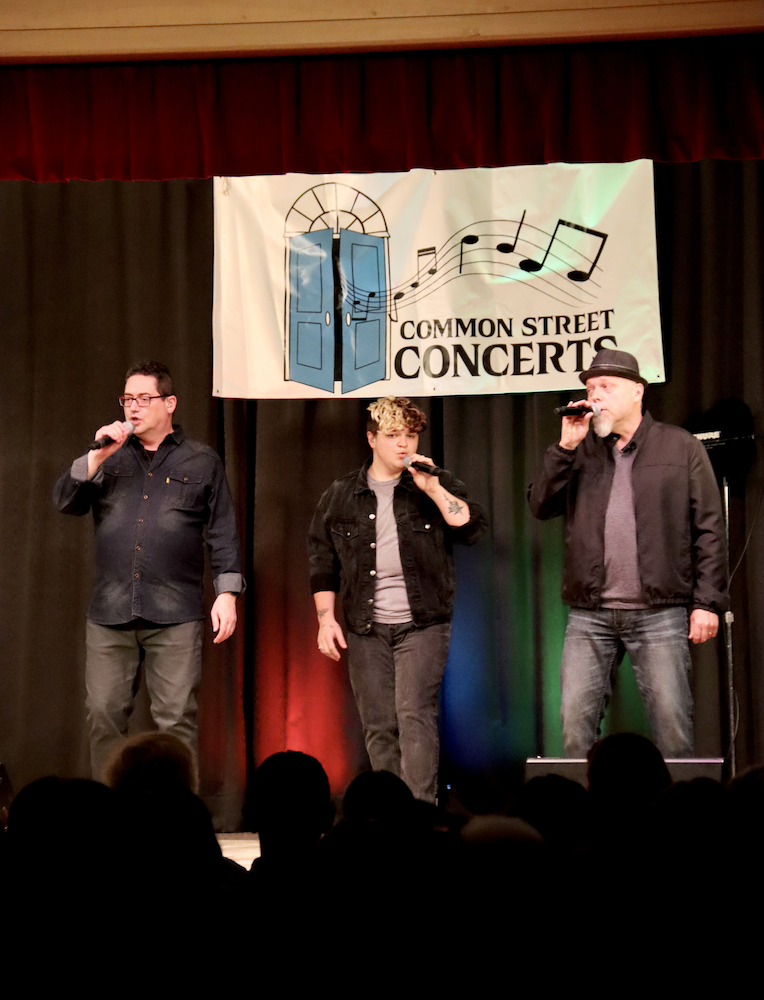The concert, week from Saturday, is Pilgrim’s third under the “Common Street Concerts” banner. Last spring, organizers introduced FOCS to the community as “a dynamic and engaging” group “known for their ability to create a full band sound using only their voices.”: