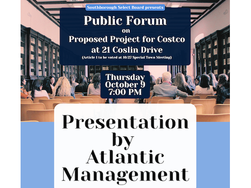 The Select Board is inviting the public to join them at a Public Forum with a Q&A on the proposed project to bring a Costco to the old EMC campus behind Madison Place.